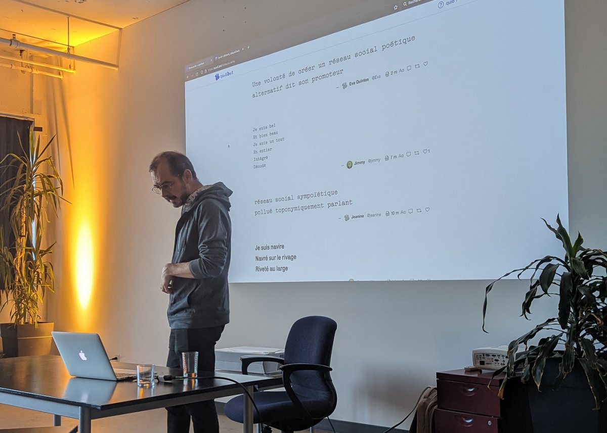 Écrivain et développeur web, David Turgeon œuvre depuis plus de vingt ans en programmation, développement web et création littéraire. Il a conçu le réseau social expérimental Quolibet, où les interventions du public prennent la forme de poèmes librement typographiés. Au-delà de ce projet, David Turgeon dispose d’une solide expérience du web et de l’évolution des réseaux sociaux, où de nouvelles plateformes émergent en remplacement des géants actuels, de plus en plus critiqués.